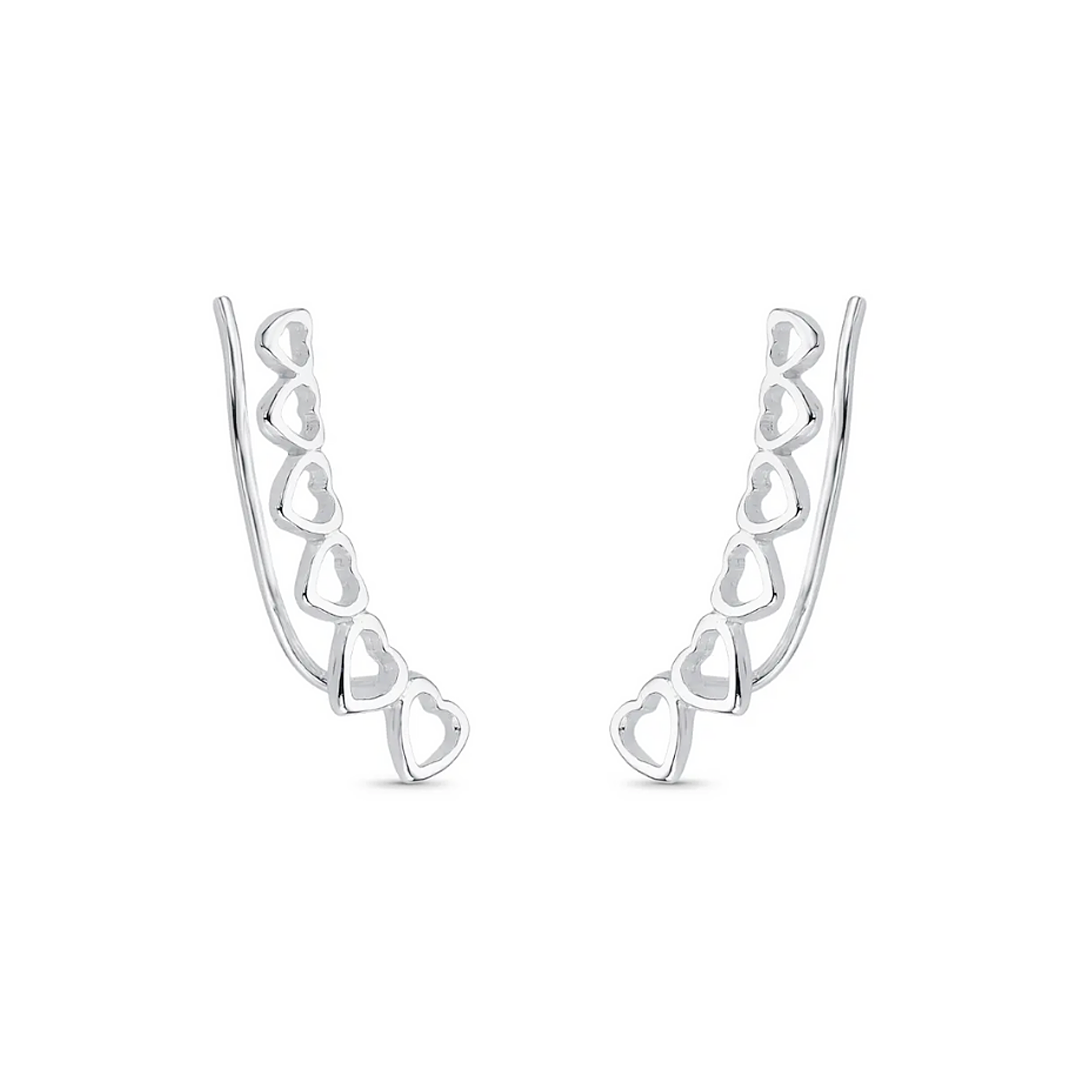 O Brinco Ear Cuff é uma tendência moderna que envolve delicadamente a orelha sem necessidade de perfurações adicionais. Este modelo com corações vazados, feito em prata 925 polida, transmite romantismo e sofisticação em cada detalhe. Seu design anatômico permite uso diário com extremo conforto. Perfeito para mulheres que buscam se destacar com elegância e autenticidade.