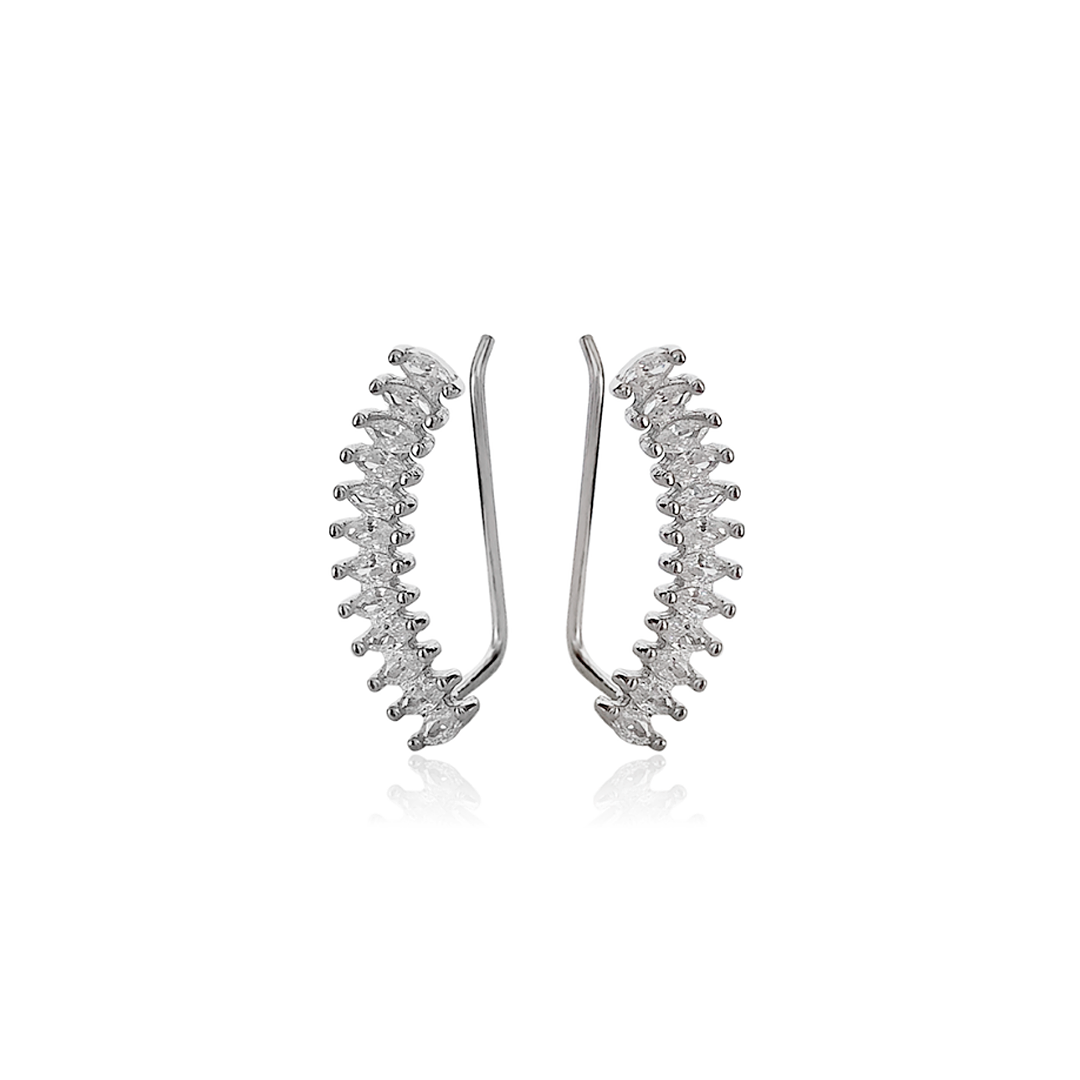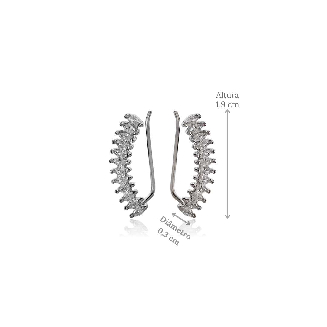 Lindo brinco Ear Cuff em prata 925, com zircônias e banho de ródio, combina conforto, estilo e durabilidade. Leve e fácil de usar, é ideal para diversas ocasiões, adicionando um toque de sofisticação ao visual. Uma escolha perfeita para presentes ou para quem busca um acessório elegante e moderno. O Ear Cuff é um tipo de brinco que se ajusta ao redor da orelha, fixando-se com uma leve pressão. Alguns modelos vêm com tarraxa, enquanto outros utilizam ganchos.