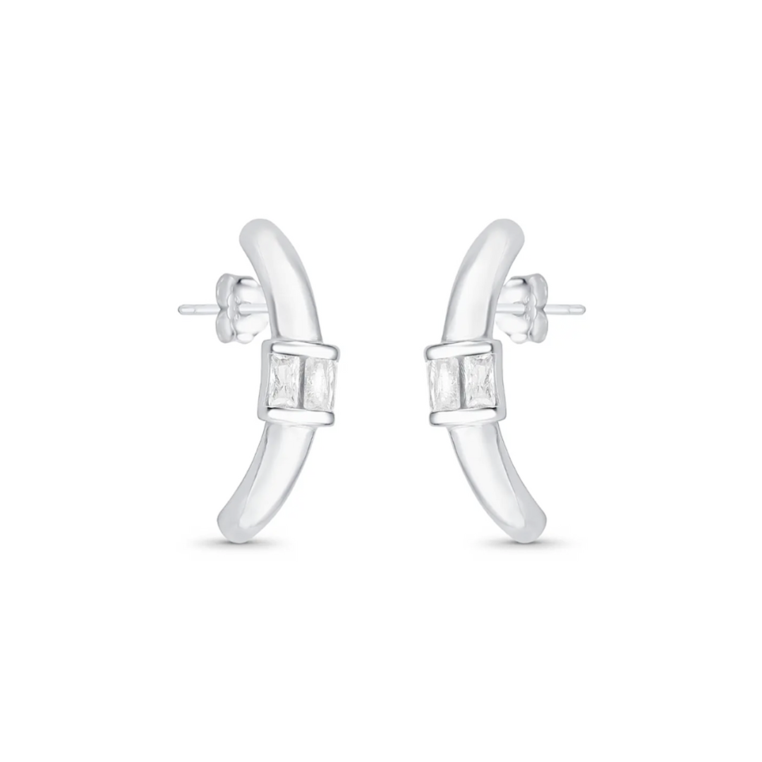 Modernidade e sofisticação em cada detalhe! Os brincos Ear Hook curvados são feitos em Prata 925, com acabamento polido e zircônias brilhantes no centro. Seu design anatômico encaixa-se perfeitamente na orelha, proporcionando conforto e um visual elegante.