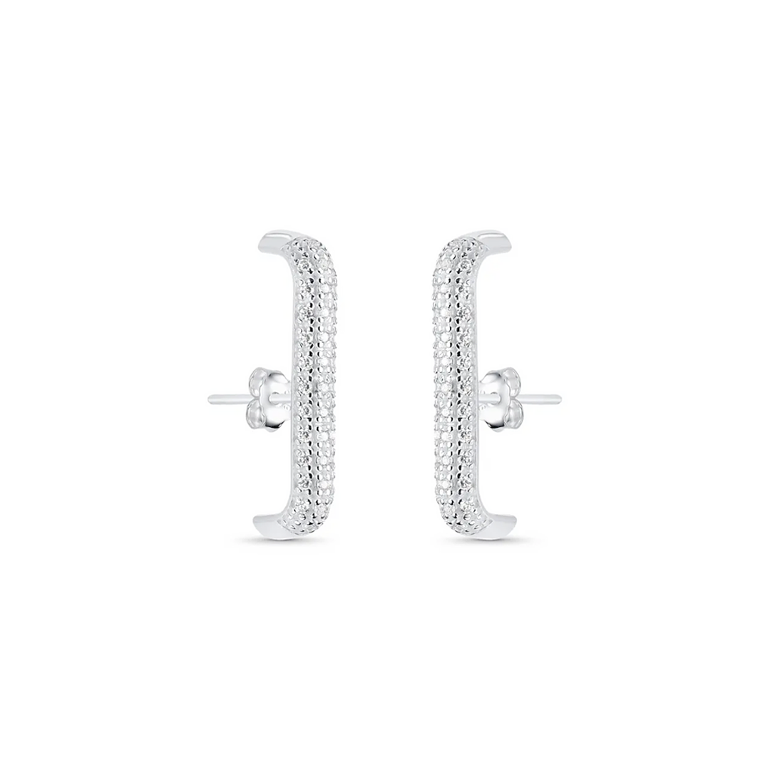 O brinco ear hook é uma peça inovadora que se encaixa na curvatura da orelha, criando um visual marcante e contemporâneo. Com zircônias reluzentes por toda a extensão, ele traz brilho na medida certa para destacar seu estilo. Produzido em prata 925 clara e acabamento polido, esse modelo é leve, confortável e seguro com tarraxa borboleta. Um acessório perfeito para iluminar seu cotidiano ou ocasiões especiais com sofisticação.