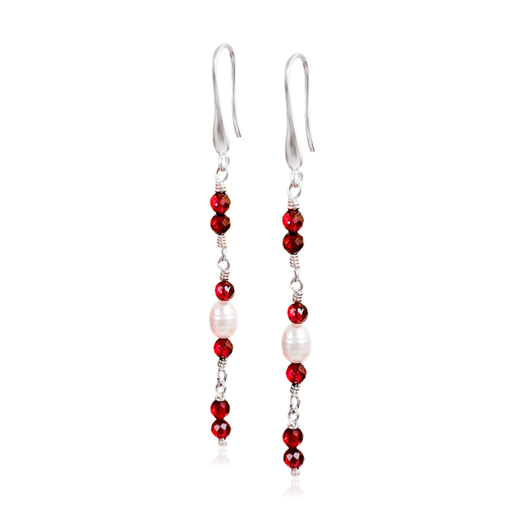 Brinco pendente de granada e pérola em prata 925, conhecido por sua durabilidade e ser hipoalergênico. O fecho gancho oferece segurança e praticidade para o uso diário. A granada promove proteção, fortalecimento emocional e estimula a criatividade, enquanto a pérola traz equilíbrio, serenidade e melhora a autoestima. Além de alongar sua silhueta, este brinco adiciona um toque de proteção, sofisticação e harmonia ao seu visual.
