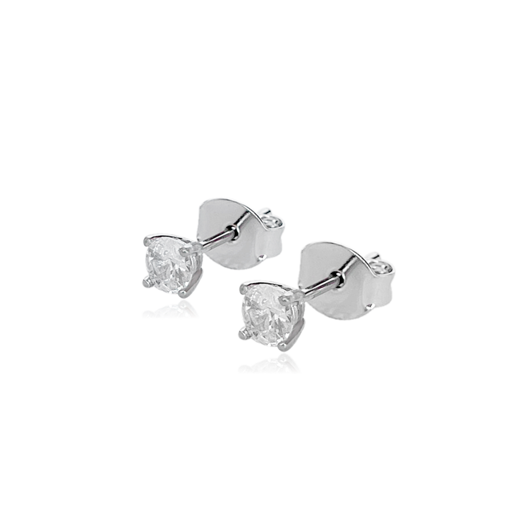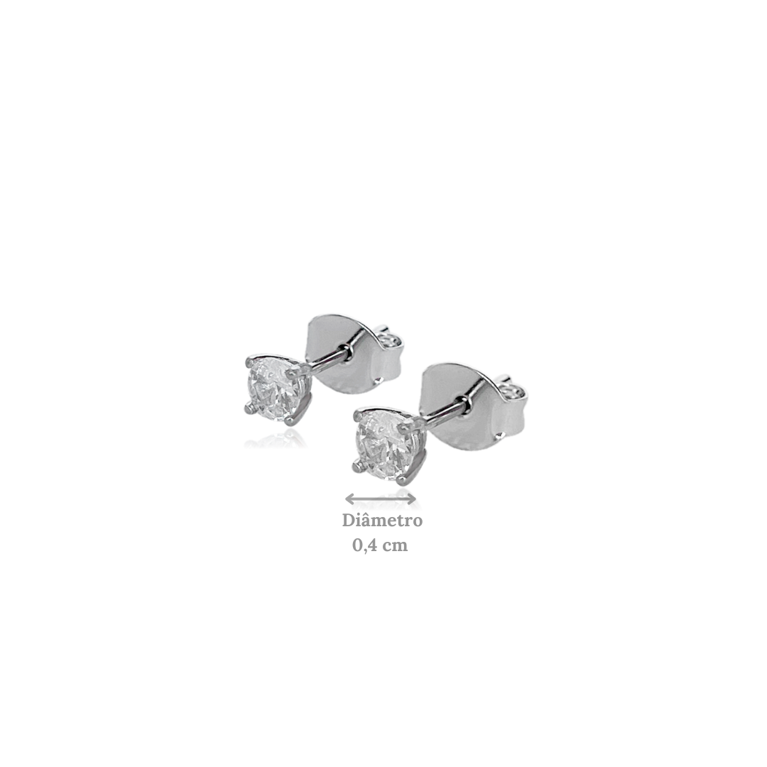 Brinco ponto de luz em prata 925, com pequena pedra de zircônia e fixação por tarraxa borboleta, finalizado com banho de ródio para um brilho deslumbrante. Este acessório, delicado e versátil, é perfeito para ser usado no primeiro, segundo ou terceiro furo.