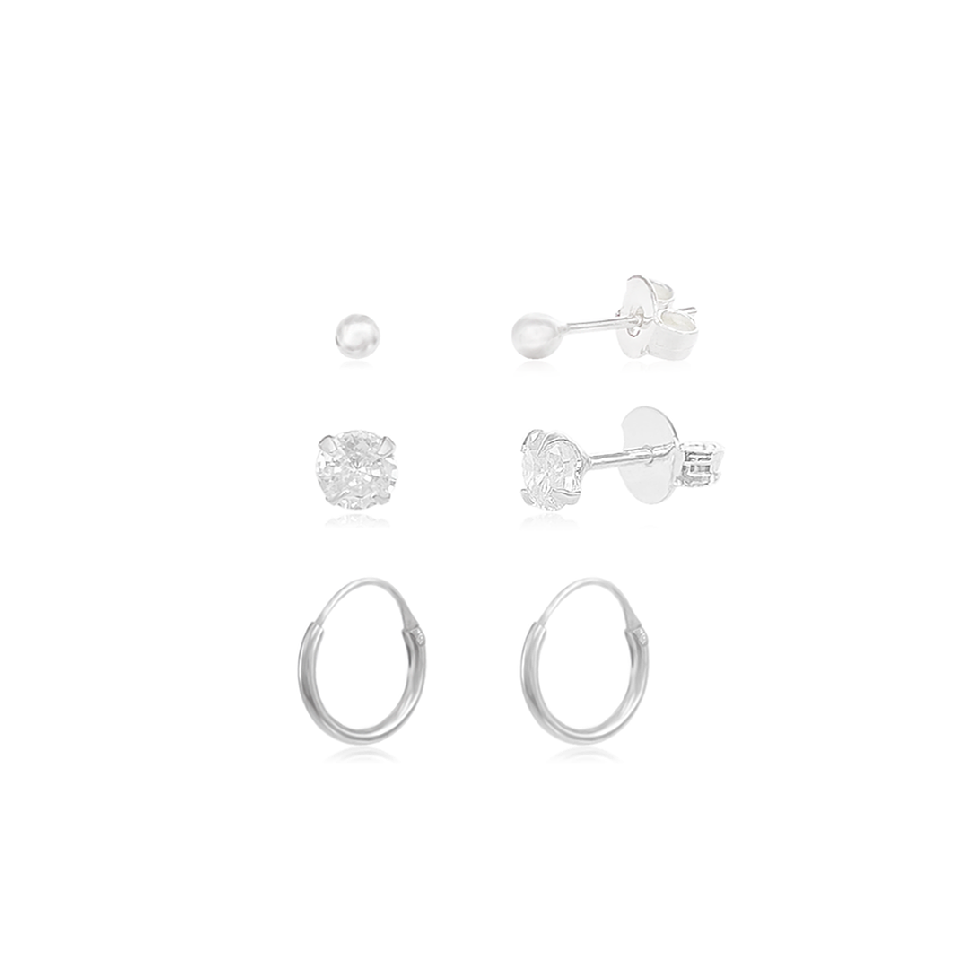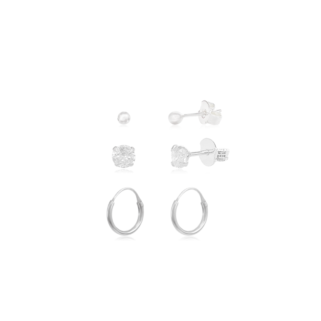 O conjunto inclui três pares de brincos com designs variados, permitindo que você escolha o par perfeito para cada ocasião. Este kit oferece um toque de sofisticação e versatilidade, ficando lindo quando usado no primeiro, segundo e terceiro furo. Esses brincos são ideais tanto para o uso diário quanto para eventos especiais. Garanta o seu agora!